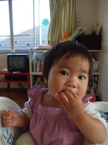 疲れて昼も食べずに寝ちゃったので、むさぼるようにおやついただいてます。手は食べちゃダメよぉ〜。