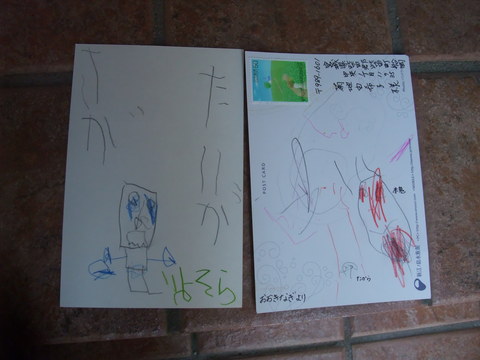空がどうしても子供雑誌に投稿したいというので初ハガキ。右は自分も誰かに書きたい、という凪よりゆうゆへ。