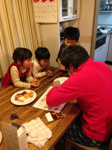 焼けたクッキーのパーツを組み立てます。子供たちもどきどき。