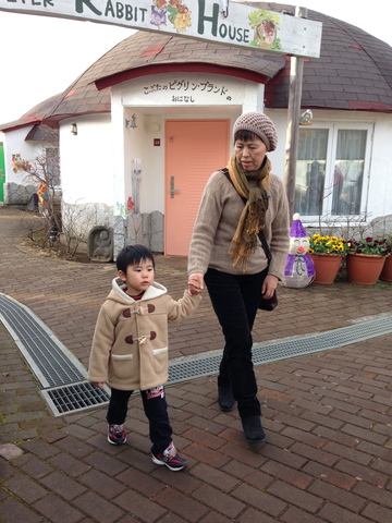 イルミネーションまで時間があるので、敷地内の公園へ。新はばーばと仲良く手をつないで向かいます。