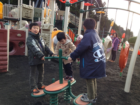 不思議なバランス遊具で遊んでます。
