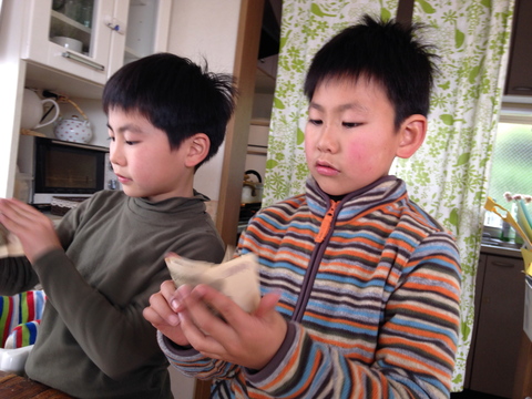 初めて見るお金に興味津々の2人。特別なお金、ってことで使い方を特別よく考えるきっかけになるといいな、というのは親心。
