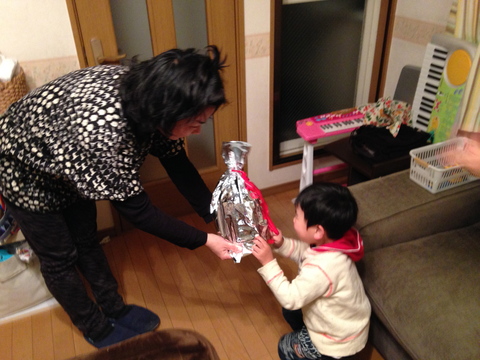一足早い誕生パーティー。今年は珍しく母からプレゼント贈呈です。
