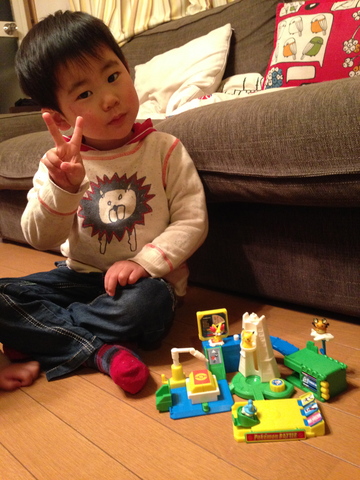 今年はポケモンのおもちゃでした。兄さんがたに組み立ててもらって満足のピースv