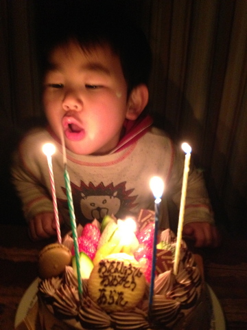 今年は初めてひとりで全部のロウソクを消せました!またひとつお兄ちゃんになったね!おめでとう♪