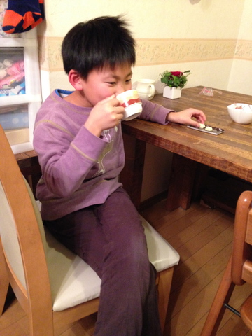 ラーメンでお腹いっぱいになってしまったので夕飯はナシで軽くお茶を。足なんか組んでみたものの、やっぱり照れちゃう凪。かーわいー♪