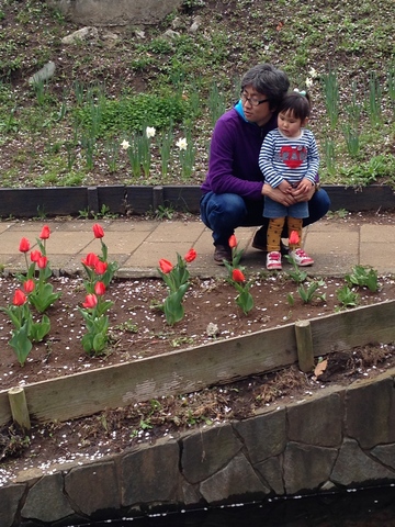 川の中を見すぎて落っこちそうな寿のために、腰に添えられた父の手。川の中、鯉がいるんです。