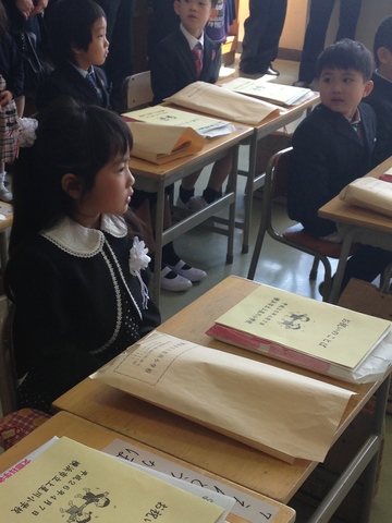 先生からお名前呼ばれた後、話を聞いてます。きりっと話を聞くとこ、頼もしくなったねぇ。