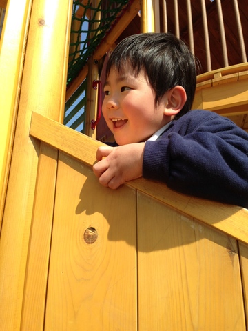 教室前でゴネ始めたので、一度、気分転換に遊具へ。遊べば楽しい幼稚園。