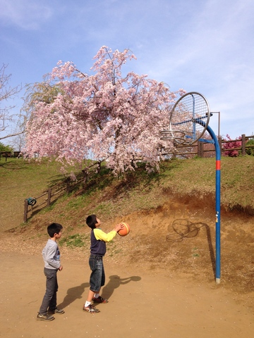 空の友だちが遊びにきて、近所の公園へ。バスケやってるんだー、って。