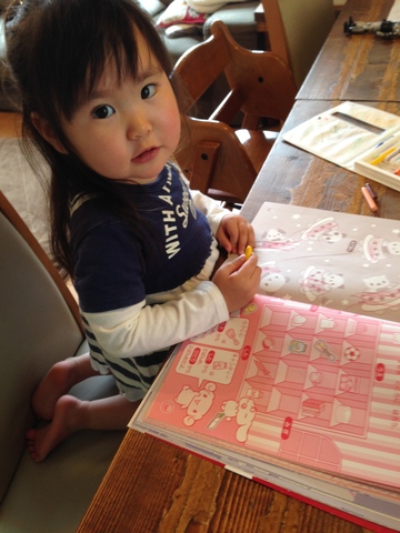今日から新もお弁当で午後までいない。すっかり退屈の寿にシール貼ったり塗り絵したりする雑誌を購入。幼稚園みたいでしょ。