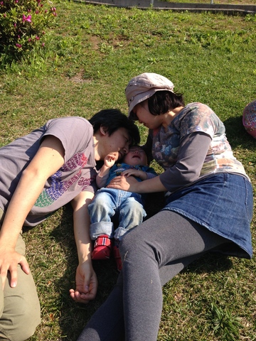 眠くなっちゃった春をトントンしてたら、宝が撮っててくれました。他の子からは、こんな風に見えてるんだね。