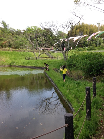 さきさんと一緒に蓮池へ。ザリガニを捕るって意気込む子供たち。いやー、キミらには捕まらんよw