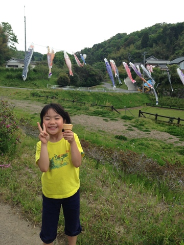 さきさんに買っていただいたアイス片手に、鯉のぼりとパチリ☆