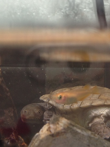 首を伸ばして90度曲げられるタイプのカメ、と説明あり。説明読んで「?」と思って、コイツと目が合って「!」となるw