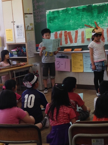 国語の時間に音読劇の発表会をします、という招待状を渡されたので来てみました。真剣な凪。
