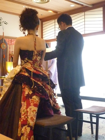 神前式は初めて。雰囲気的にもこのドレスで合ってたな。姉さん、正解。