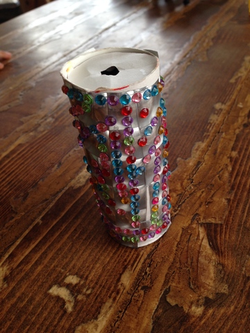 宝は万華鏡を作りました。中に入れるビーズが大きくて、覗くより外側の方が煌びやか、というのが宝らしい。