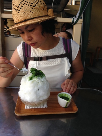 江ノ島のちょっと有名なかき氷屋さんに来ました。中に小豆が入ってるんです、宇治金時。