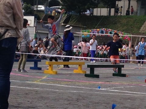 スピード出しすぎて転けてる。おーい、がんばってー!