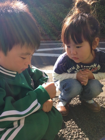 そろそろ冬眠前のテントウムシ。ひととき一緒に遊びます。