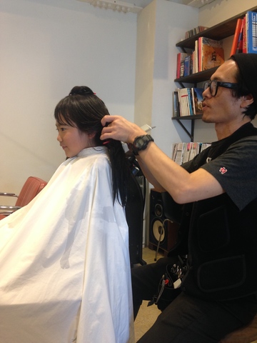 ずいぶん伸ばしていた髪をバッサリ切ります。渡部さんに切ってもらうなんて、小学生にはだいぶ贅沢だけど。