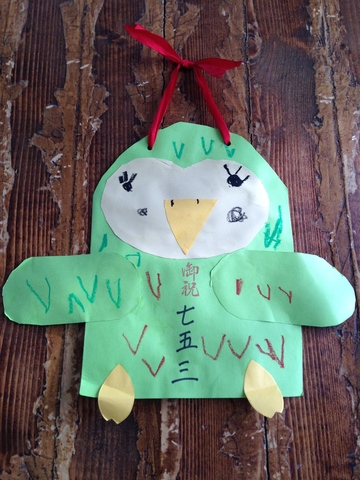 今年の七五三製作、千歳飴袋はフクロウさん。縁起物だね。