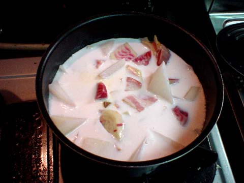 クリームスープにしたらピンクになっちゃった。味は普通なんだけどね。
