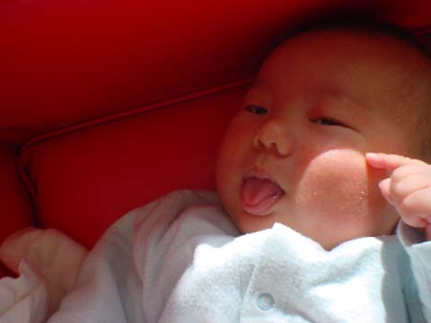 最近手で顔をいたずらするようになって、引っかき傷が耐えません。(この間は目の下のところかなり深くやっちゃいました)