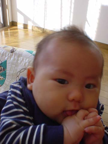 姿勢は崩してもカメラ目線は外さない。できる子供です。