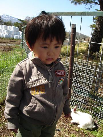 「うさぎさんに触ってみよう!」のコーナーにて。猛烈に気が乗ってません。