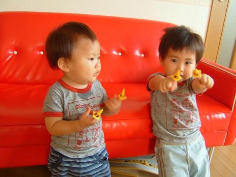 工事現場キットのコーンを指にはめるのが今日の流行り。