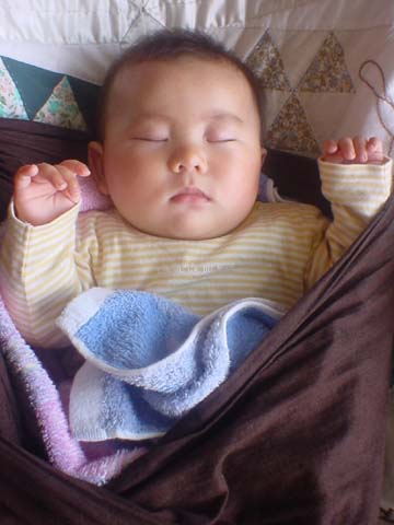 寝ちゃった。しかも、食べちゃうぞ〜ポーズ。くふふ。
