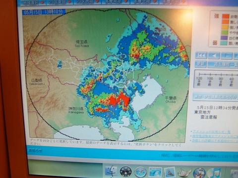 どれくらい降ってるかというと、うちの上空はレーダー真っ赤っか。