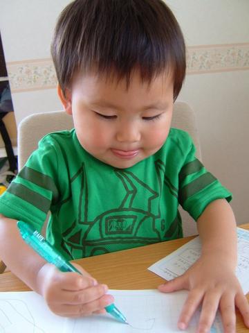 意外にもペンの持ち方がちゃんとしてる凪。崩れると持ち直したりしてて、びっくり。