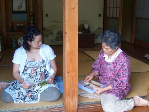 子供らが外遊びの間、縁側でおばさんの旅行の話など聞いてます。
