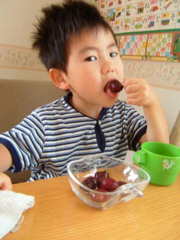 今朝のデザートはアメリカンチェリー☆こわごわペロリ。