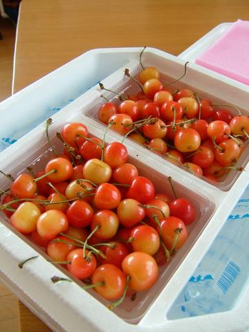 宮城のひいおばあちゃんからさくらんぼが届きました!やったぁ♪