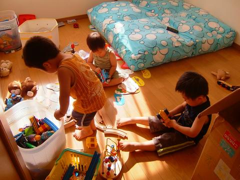 今度は我が家の子供部屋へ。今日の午後は3人で心ゆくまで遊んでおくれ。
