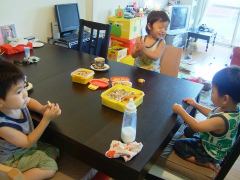 久しぶりに百木野家へ。葵は幼稚園なのでまずは3歳以下のお弁当タイム。