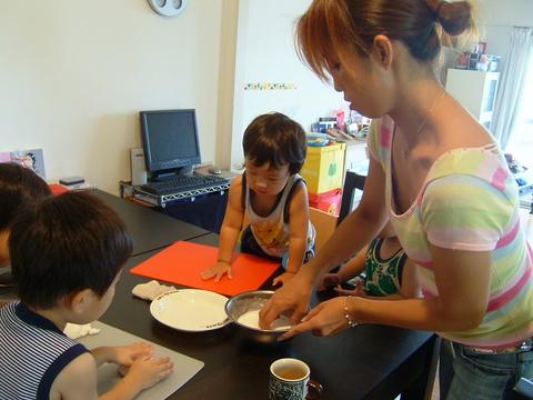 おやつの白玉をみんなでこねこねしてもらいまーす。