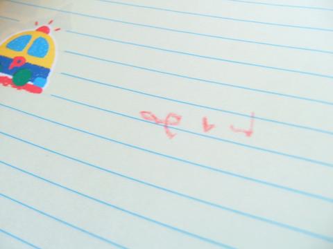 葉っぱみたいに書けた、と空大満足の作品。一番左のやつ、芽が出たときみたいでしょ?