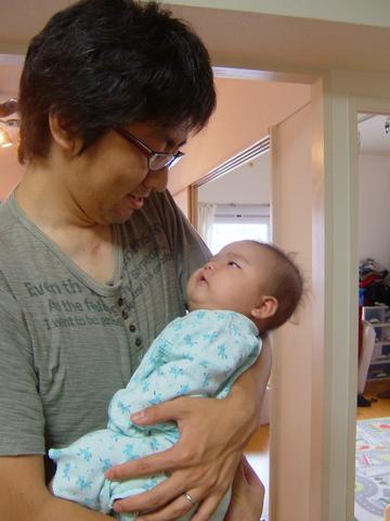綾:アタチ、もう首座ってるからそんなだっこじゃなくていいのよ。ビビりすぎよぉ。