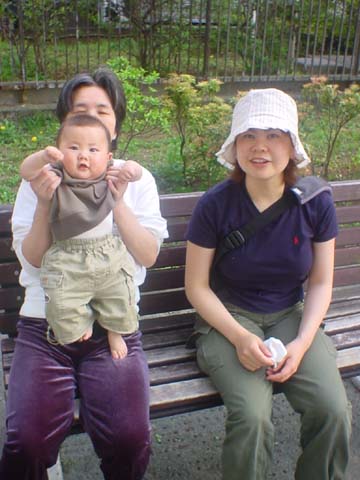 おばあちゃんも誘って、空はお散歩です。この公園は初めてだね。