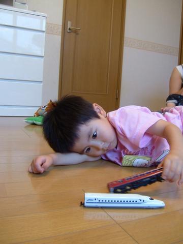 新しい車両が来たらこうして寝そべって自分の世界へワープ!!!んもう、みんな来てるのにぃ。