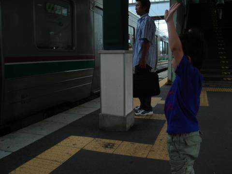 電車に向かって手を挙げちゃったよ、この人。
