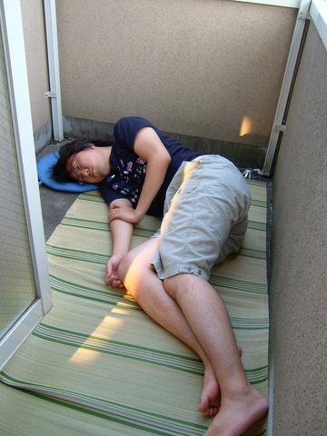 うちのベランダではだんなさまが寝てます。今日はトモコに付き合ってららぽーと散歩しまくったからね。お疲れさま。