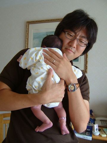真吾に抱かれるとやっぱり新生児の小ささが際立つね。