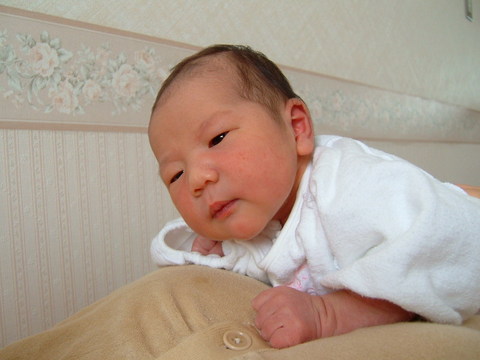 自分で首を持ち上げちゃいました。。まだ生後2日目だよ、宝。。