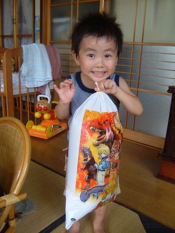 昨日の夕方に商店街のお祭りでゆうゆに買ってもらった綿あめ。袋が恐竜だからどうしても欲しいって駄々こねたそうです。